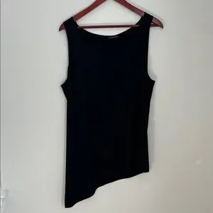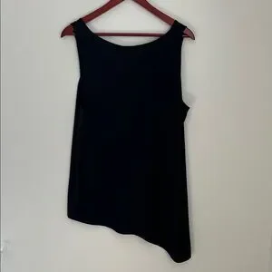 Eileen Fisher 100% Silk Black Asymmetrical Scoop-Neck Sleeveless Top Size XL