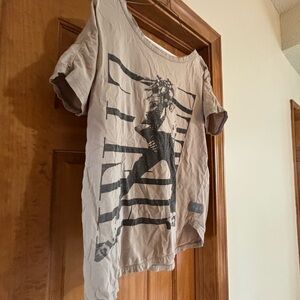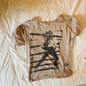 Tan Graphic T-Shirt with Black Design punk Y2K
