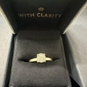 This exquisite gold ring from features a brilliant solitaire diamond. A timeless piece for any jewelry collection. Band shows wear but can be buffed with jeweler
