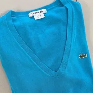 Lacoste V-Neck Sweater in Vibrant Turquoise