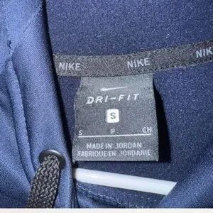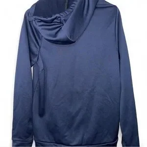 Comfortable blue hoodie with Dri-FIT technology. Features drawstring and Nike branding.