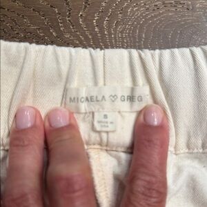 Micaela Greg Linen Blend Elastic Waist Cropped Pants Neutral Minimal size S