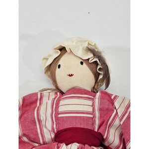 VINTAGE Handmade Ragdoll Folk Art Doll Red Striped Dress White Trousers 15.5"