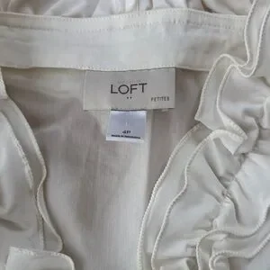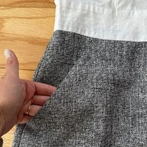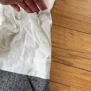 LOFT White Ruffle Bodice Gray Tweed Pencil Dress