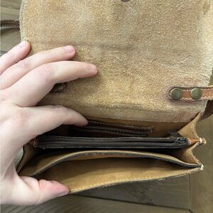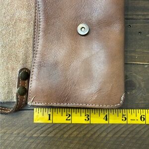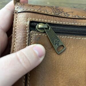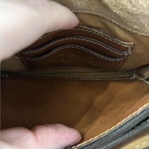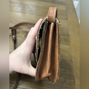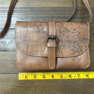 Stylish brown leather crossbody with map design. Ideal for travel and daily use. EUC, just has a few spots of rubbing/discoloration (all pictured) and some very slight ink staining to the interior.