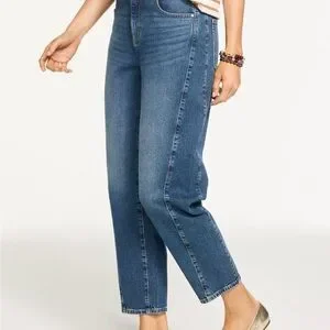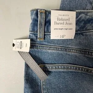 Talbots Relaxed Barrel Jean Denim Ankle Length High Waist Women’s 14 Petite New