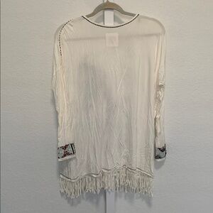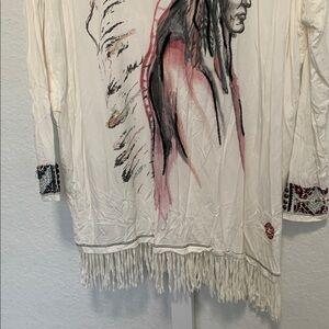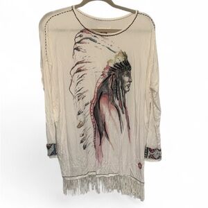 Double D Ranch Native American Graphic Fringe Hem Long Sleeve Shirt