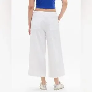 Cropped wide-leg pants in white for a relaxed, modern silhouette. Elastic waist with drawstring offers adjustable comfort.