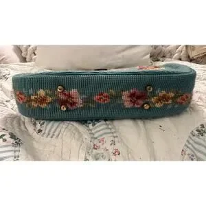 SHOWPIECE! NEVER USED VINTAGE 50's TEAL NEEDLEPOINT & PETITPOINT LEATHER BAG