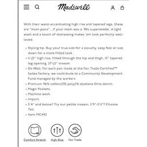 FROM MADEWELL PRODUCT WEBPAGE: