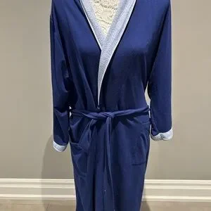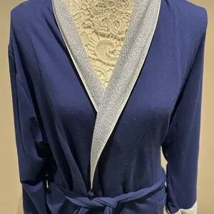 Experience comfort and style with this elegant navy blue women's robe. Perfect for lounging, this robe offers a soft touch and a classic look.