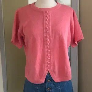 A Vintage Bedford Fair Short Sleeve Coral Sweater Size Large