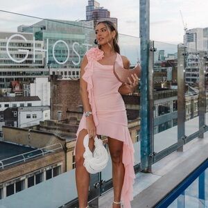 House of CB Charla Mini Dress. Soft Pink Apricot Ruffle. Size M.