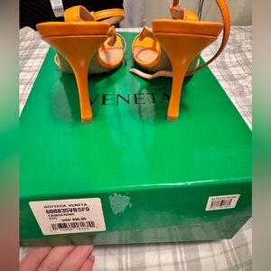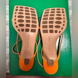 Bottega Veneta Orange Strappy Square-Toe Heeled Sandals