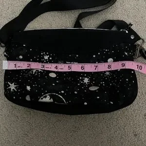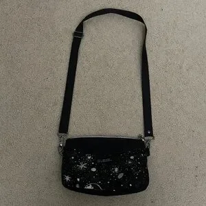 Moon and stars celestial crossbody bag, small purse, handmade, metallic, cotton