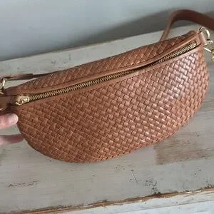 Quince Italian Leather Handwoven Sling Bag In Cognac. Excellent used condition basically like new.