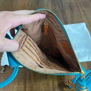 HOBO Wristlet Blue Pebbled Leather Aqua Sable Clutch Wallet NWOT