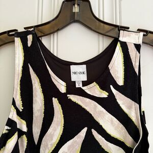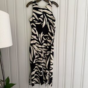NIC+ZOE Black and Cream Leaf Design Midi Dress