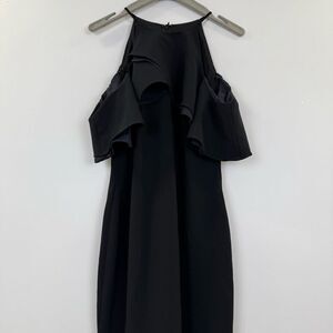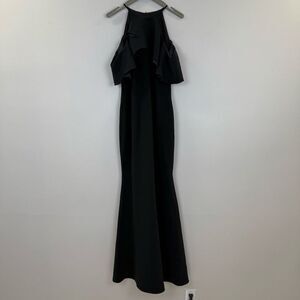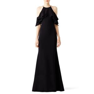 Badgley Mischka Black Crossover Ruffle Gown 💛