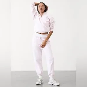 Soft pink jogger pants designed for everyday comfort. Elastic waistband and cuffed ankles provide a secure fit. Lightweight fabric offers breathable wear for daily activities. Versatile pink color pairs easily with casual tops.