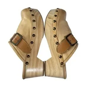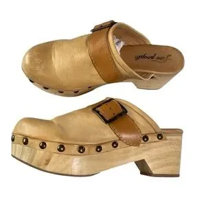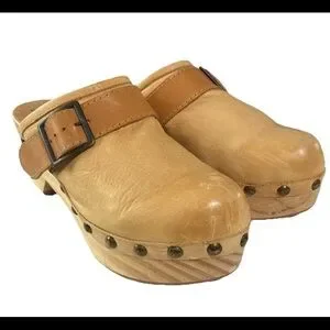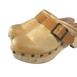 Free People Shoes Culver City Clogs Leather Camel Tan Boho Hippie Sz. 40 / 9-9.5