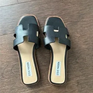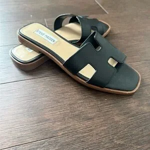 Elegant black leather sandals with a stylish cutout design. Perfect for casual outings.