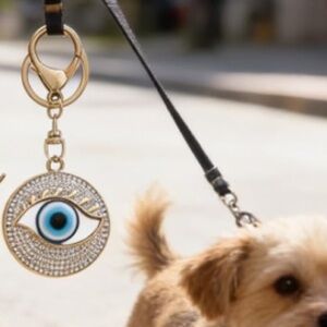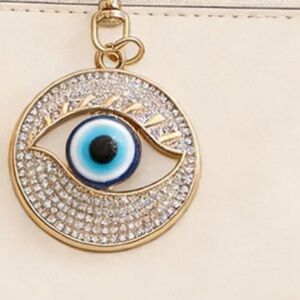 Evil eye purse bag/purse charm keychain. Gold-tone metal with crystal accents. Attach to bags or keys for a stylish charm also Protection and good luck is what the evil eye is about besides beauty. Follow my closet for more unique charms at great prices. Thanks