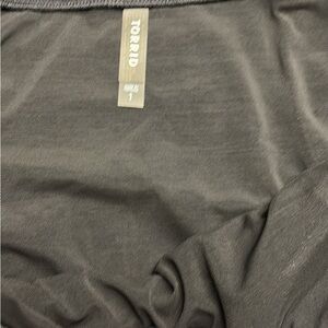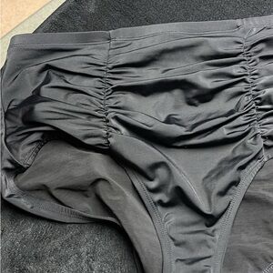 Classic black one-piece swimsuit from torrid. Smooth fabric with clean seams. Branded tag visible inside. Simple and versatile style for swimwear rotation. Does have some pilling not 100% sure if that’s what it is. They look like a little holes but they’re not holes and I’m also including a pair of bottoms that were only worn twice. They also have the rouging. Smoke free home dog and cat friendly great deal for both pieces, especially from torrid. Open to offers as well.