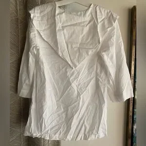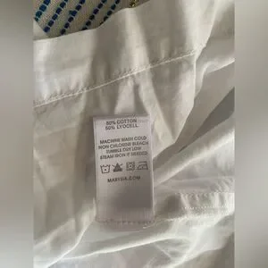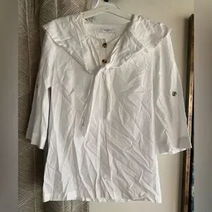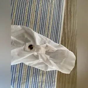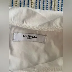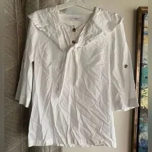 Marysia Resort Blouse White Three-Quarter Sleeve with V-Neck Sz Small