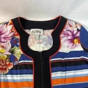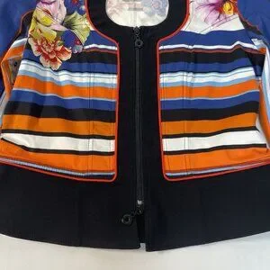 Joseph Ribkoff Floral & Stripe Zip Jacket – Size 10 (CAN/USA)