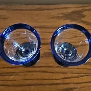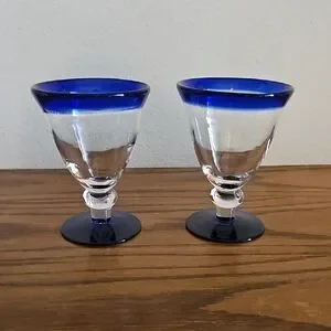 2 Cobalt Blue and Clear Glass Goblets