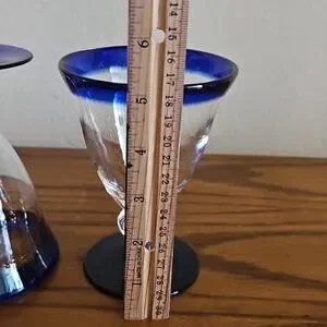 Enhance your dining experience with these elegant blue and clear glass goblets. Perfect for any occasion, these goblets add a touch of sophistication to your table setting.
