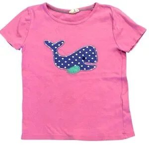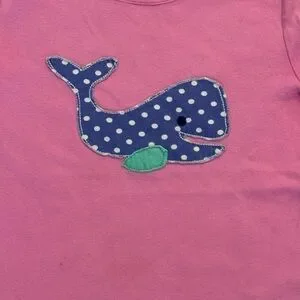 Charming pink tee with a polka dot whale design. Soft and fun for kids. Theres a spot on the front as shown.