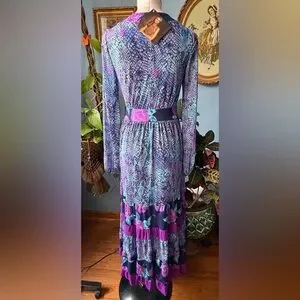 IMAN Multicolor Floral and Snake Print Long Sleeve Dress