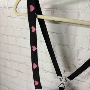 This adorable ROMWE suspender skater skirt is the perfect mix of playful and stylish! Featuring a classic black pleated mini skirt paired with adjustable suspender straps decorated with pink heart details, this piece brings instant charm to any outfit.