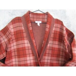 D&Co Womens Red Plaid Open Front Cardigan Sweater Jacket Pockets