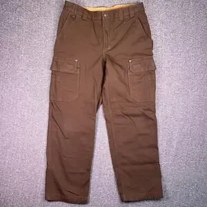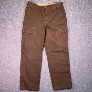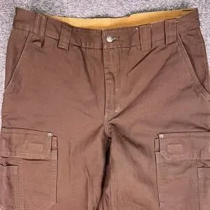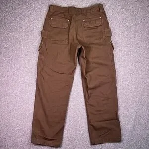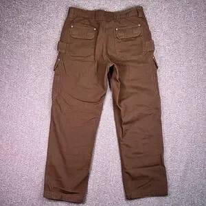 Duluth Trading Cargo Work Pants Men 36x32 Brown Fire Hose Canvas Utility Relaxed