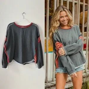 Natural Life Charcoal Knit Trim Sweatshirt
