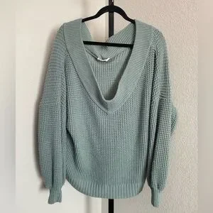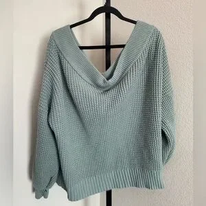 Zenana Outfitters Women’s Off the Shoulder Green/Blue V-Neck Sweater