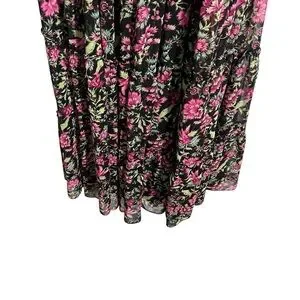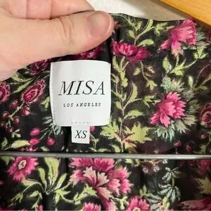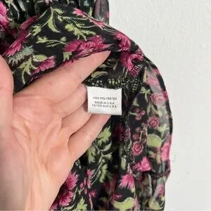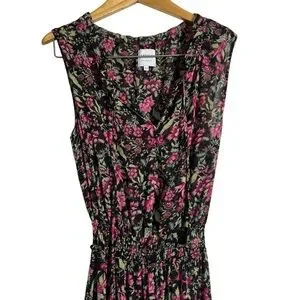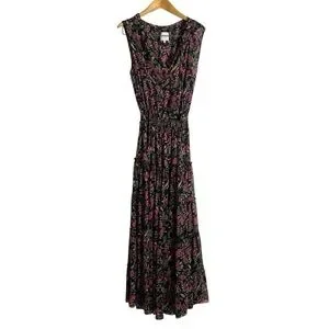MISA LOS ANGELES Blogger Favorite Hollen Sleeveless Split-Neck Tiered Maxi Dress. Smocked waist. Sheer with attached lining. Sleeveless. All over floral print. Ruffles.