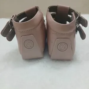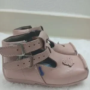 Delightful pink dress shoes for kids featuring a cute butterfly accent. Perfect for special occasions.