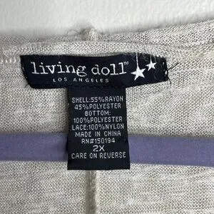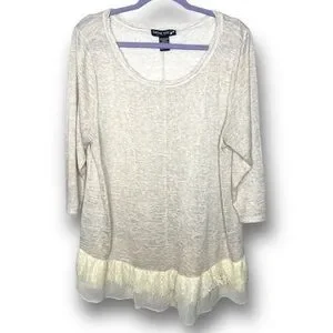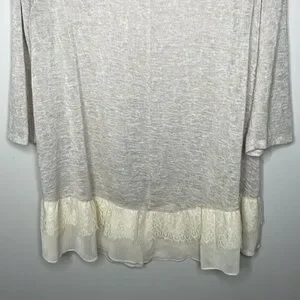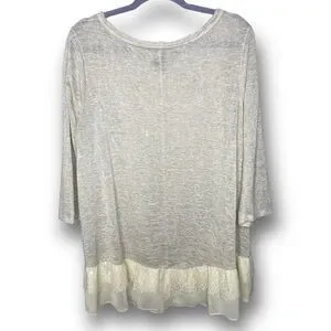 Living Doll Size 2X Ivory Lace Trim Gauzy 3/4 Sleeve Lightweight Dainty Top