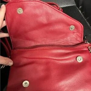 Stylish red purse featuring a leopard print bow and button detail. Perfect for a night out.