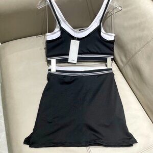 ALO Yoga Black & White Ribbed Sports Bra and Skirt Set