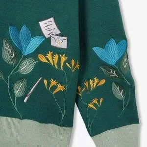 Elevate your style with this chic forest green cardigan from Alboe, featuring vibrant floral embroidery. A perfect blend of comfort and elegance for any occasion.