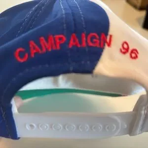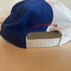 Bold embroidered front features The White House design. Lightweight cap in white with red brim accent and blue side panels. Comfortable casual style for patriotic events and everyday wear. Adjustable snap back