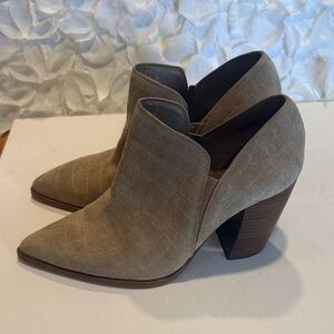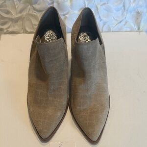 Vince Camuto Taupe Croc-Embossed Suede Pointed Slip-On Booties