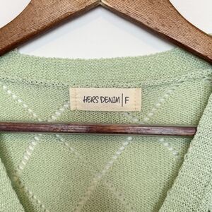 Hers Denim Sweater Womens Small Green Short Sleeve Knit Cropped Floral Cardigan Top