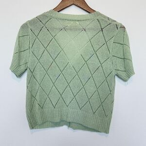 Women's short sleeve cropped sweater cardigan in a light green color