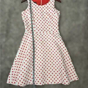 Embrace timeless style with this IVONNE brand chic fully lined sleeveless polka dot midi dress, featuring a smooth, breathable fabric that contours comfortably to the body. Perfect for any occasion, it boasts a flattering fit that accentuates the waistline, complemented by playful, evenly spaced polka dots that add a touch of whimsy